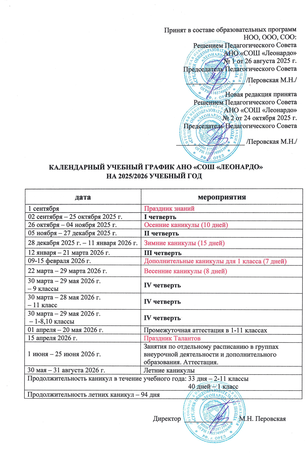 Календарный учебный график 2025-2026 редакция 24.10.2025